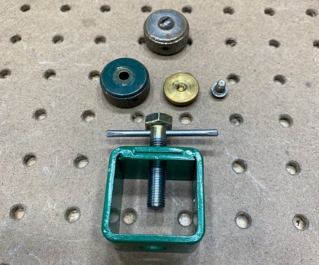 This is a Custom made Fuel Cap holder that allows you to firmly grasp/clamp the cap so you can undo the small retaining machine screw.