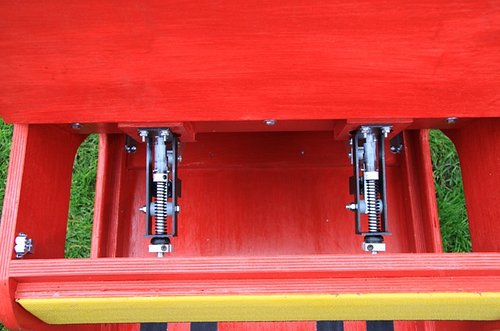 This Flat Front Split Pedal Box is easier to load, more sensitive, easier for smaller dogs to active because the "sweet spot" on the pedal is where their feet land. The pedal pivots on the top and bottom of the box with a split in the middle where the thrusters are activated.